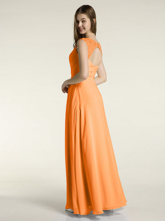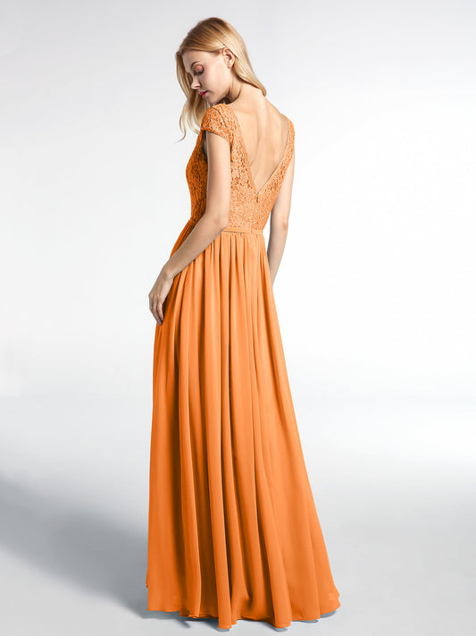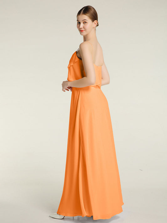 Babaroni MariaVestidos largos de chiffon de cuello en Y para damas de honor Naranja