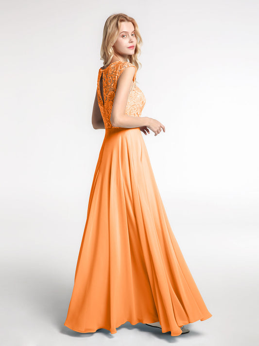 Babaroni CoraVestido largo de dama de honor de chiffon con tirantes dobles Naranja