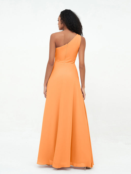 Babaroni XantheVestidos máximos de chiffon de un solo hombro con abertura Naranja