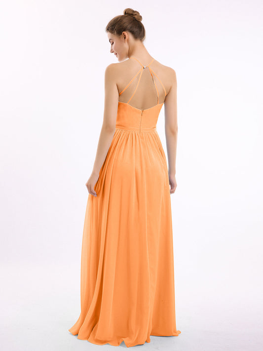Babaroni LesleyVestidos largos de chiffon estilo halter con doble tirante Naranja