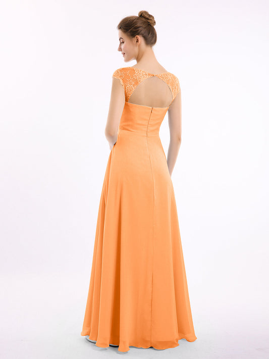 Babaroni MarleyVestidos de dama de honor de chiffon con mangas cap de encaje Naranja