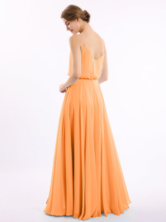 Babaroni TeaganVestidos de dama de honor de chiffon con tirantes finos y escote en V Naranja