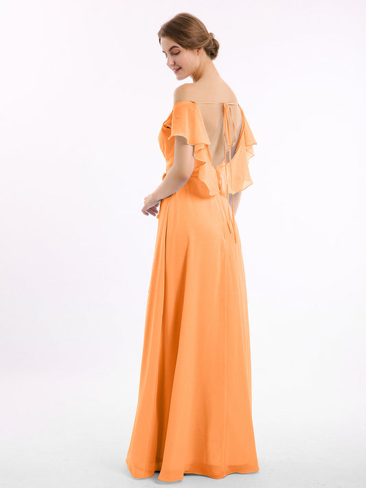 Babaroni NicoleVestidos largos de dama de honor de chiffon sin tirantes Naranja
