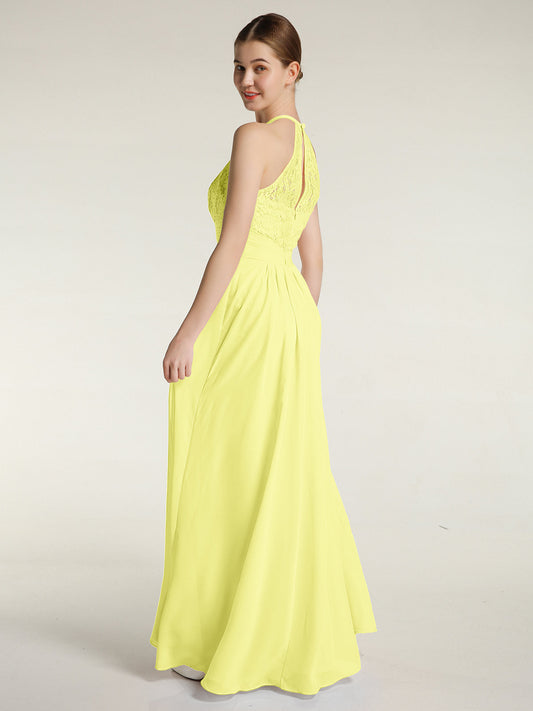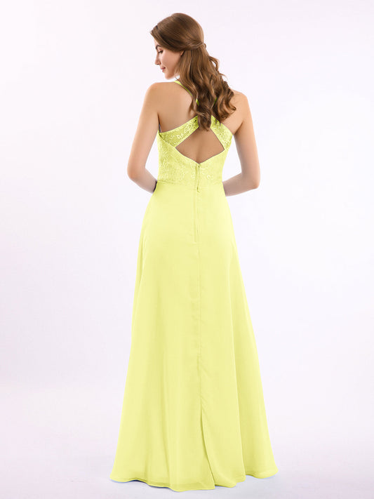 Babaroni AmandaVestidos largos de chiffon y encaje estilo halter Narciso