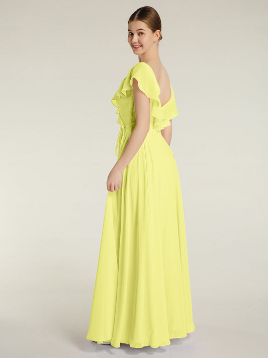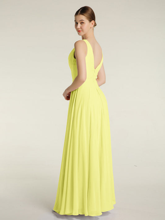 Babaroni CarolVestidos sencillos de chiffon con escote en V Narciso