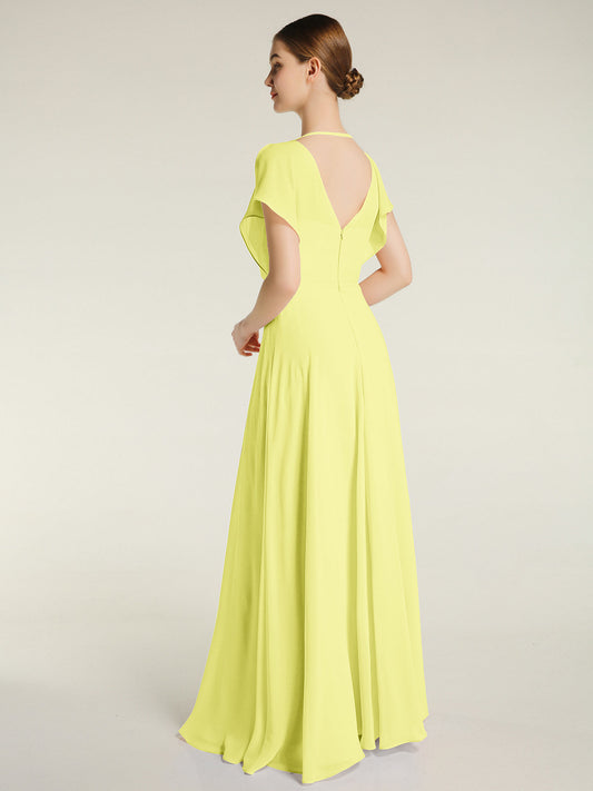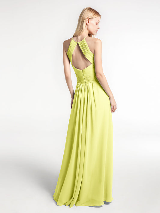 Babaroni AprilVestido sencillo de chiffon estilo halter con abertura Narciso