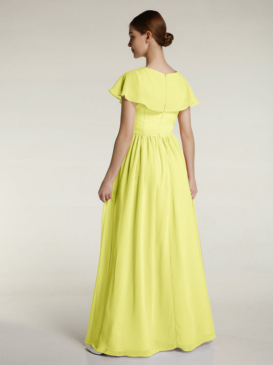 Babaroni GemmaVestidos largos de chiffon con mangas cap y abertura Narciso