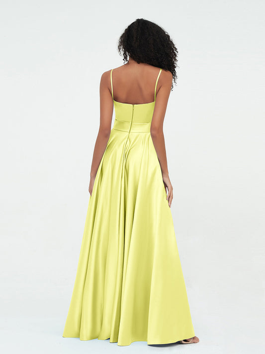 Babaroni MyrnaVestidos máximos de satén estilo A-line con tirantes spaghetti Narciso