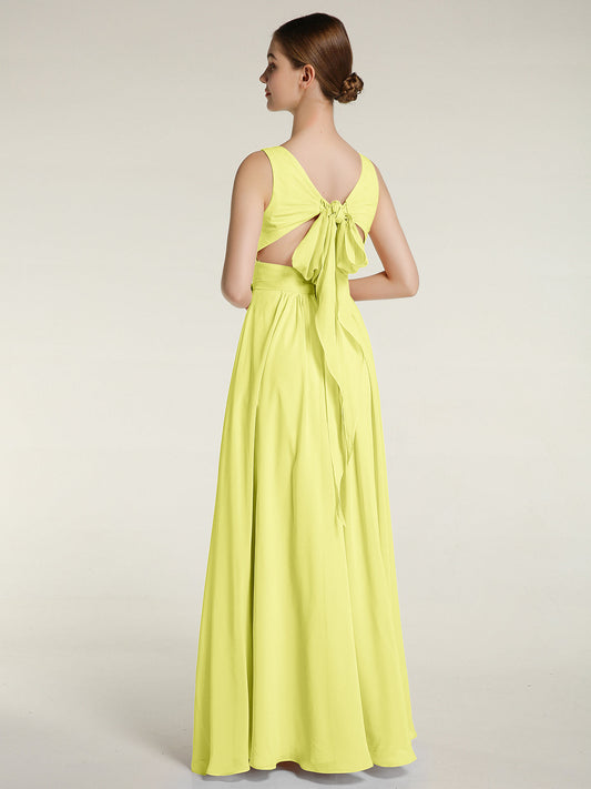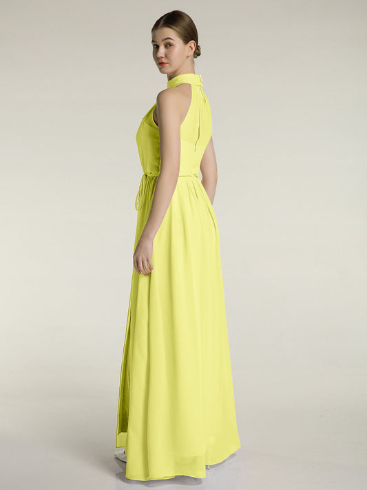 Babaroni JaneVestidos largos de chiffon estilo halter con lazo Narciso