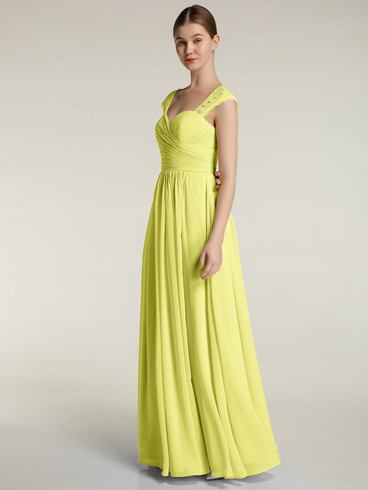 Babaroni HelenVestidos de chiffon con escote en corazón y mangas cap de encaje Narciso