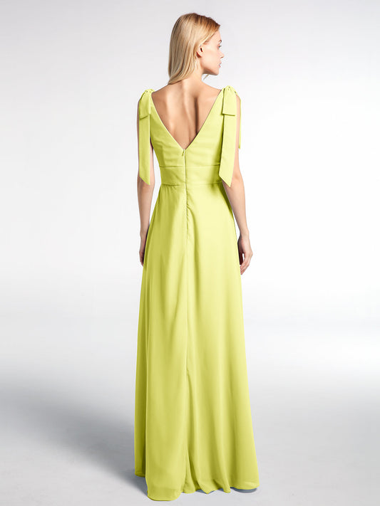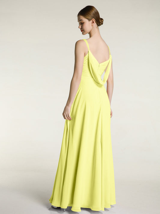 Babaroni JuliaVestidos largos de chiffon con tirantes finos y escote en V Narciso
