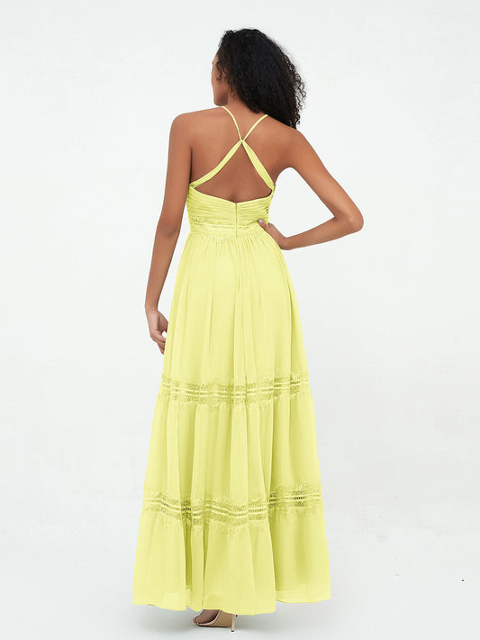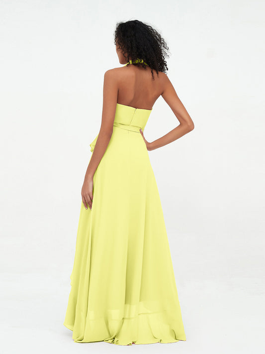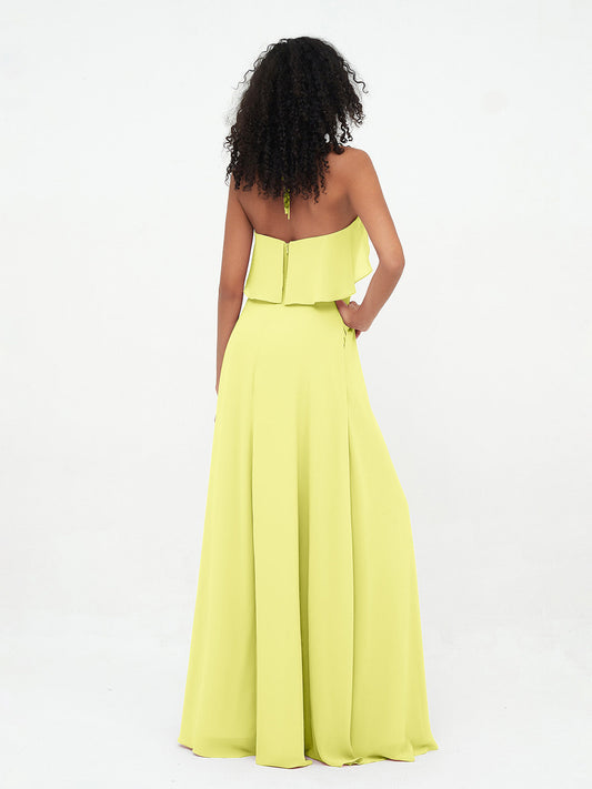 Babaroni AmyVestidos largos de dama de honor de chiffon con tirantes de cuello halter Narciso