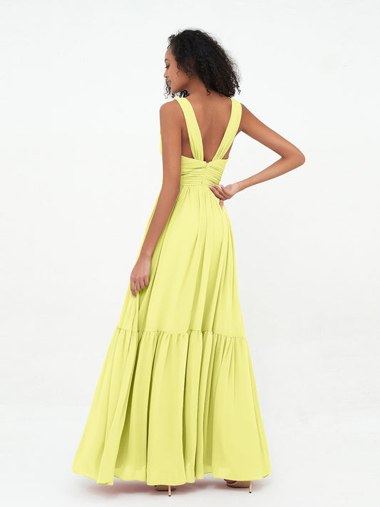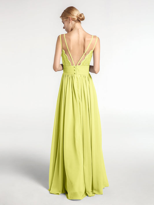 Babaroni CoraVestido largo de dama de honor de chiffon con tirantes dobles Narciso