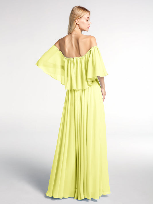 Babaroni VirginiaVestidos máximos de chiffon con falda escalonada estilo off shoulder Narciso