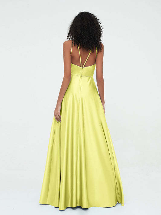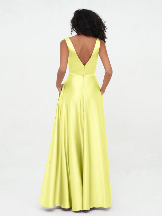 Babaroni SadeVestidos máximos de satén estilo princesa con escote en V y bolsillos Narciso