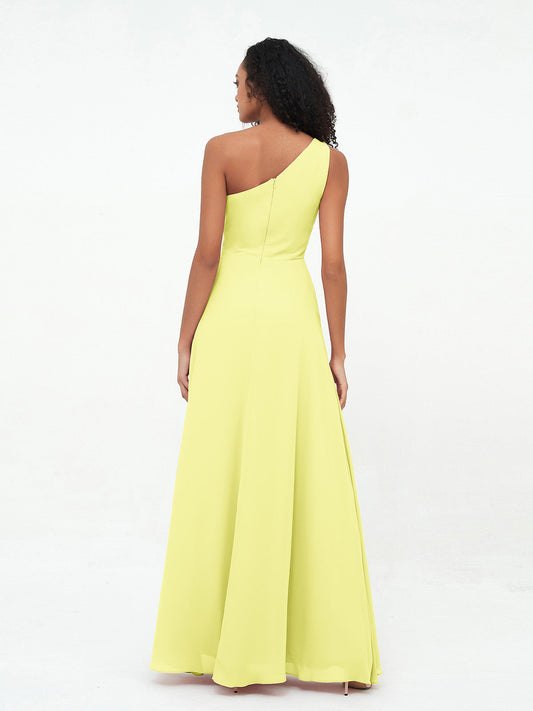 Babaroni XantheVestidos máximos de chiffon de un solo hombro con abertura Narciso