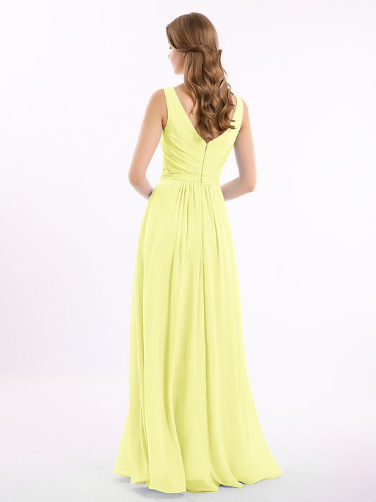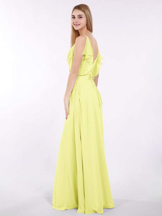 Babaroni GeorgiaGeorgia Escote En V Gasa Largo Vestido De Dama De Honor Narciso