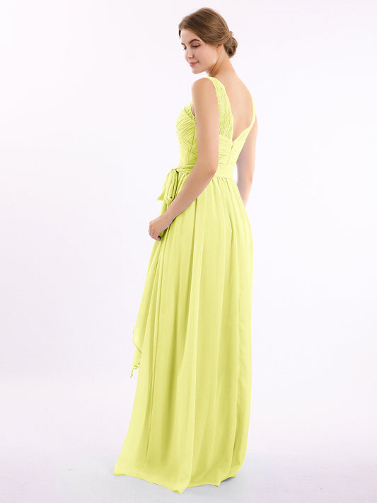Babaroni LindaVestidos largos de chiffon con tirantes de encaje y lazo de cinturón Narciso