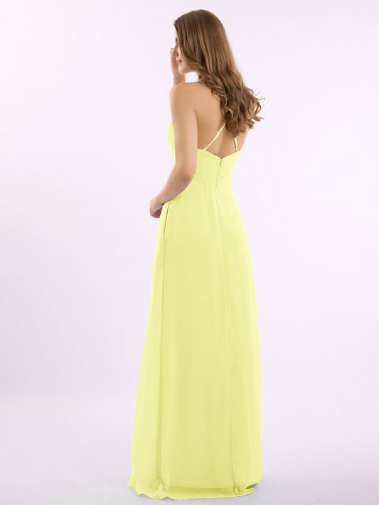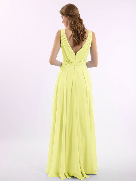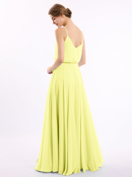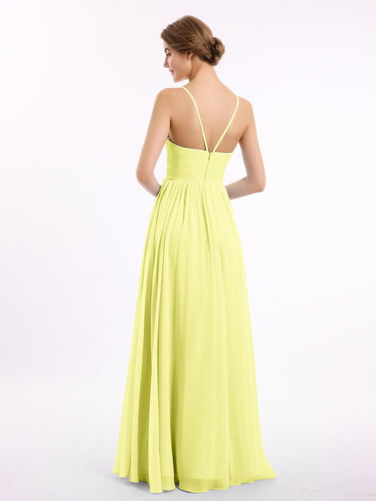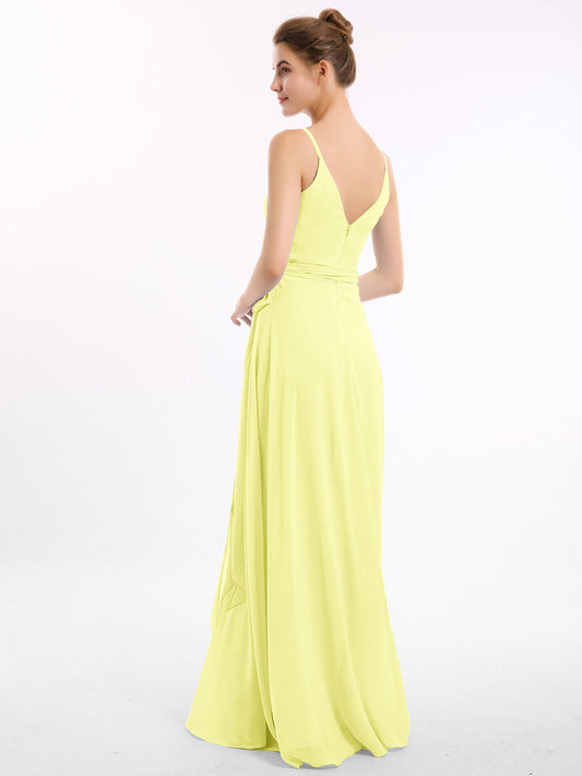 Babaroni VickyVestidos de dama de honor de chiffon con escote en V y tirantes finos Narciso