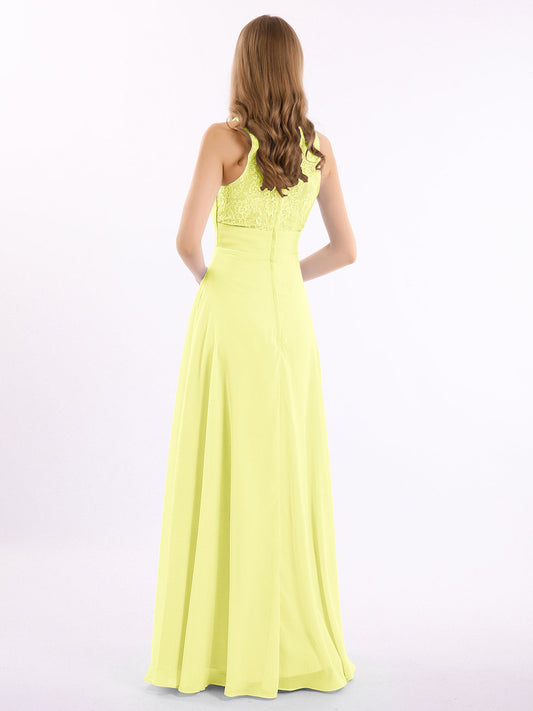 Babaroni LucilleVestidos largos de chiffon con encaje en escote en V profundo y espalda descubierta Narciso