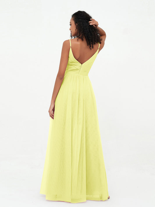 Babaroni MarjorieVestidos largos de tul plisado con tirantes spaghetti Narciso