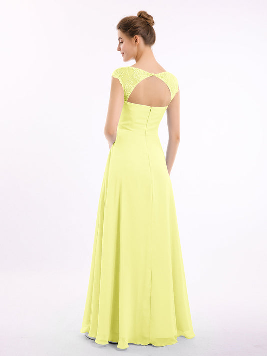 Babaroni MarleyVestidos de dama de honor de chiffon con mangas cap de encaje Narciso