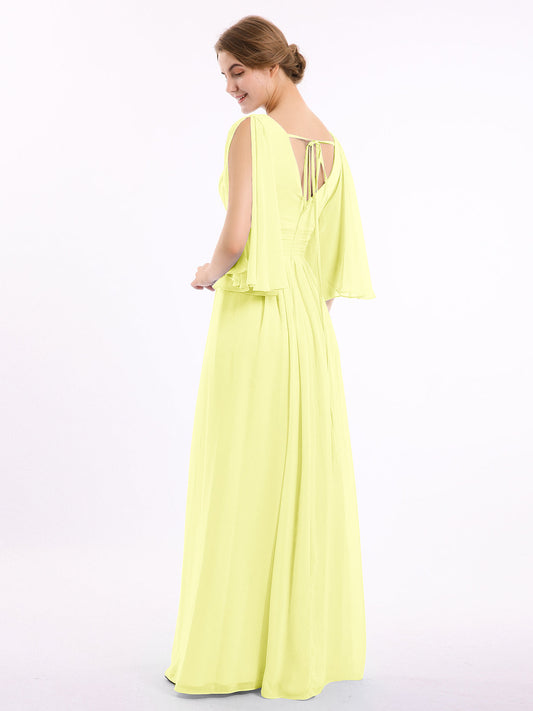 Babaroni SallyVestidos de dama de honor de chiffon con mangas cap y abertura Narciso