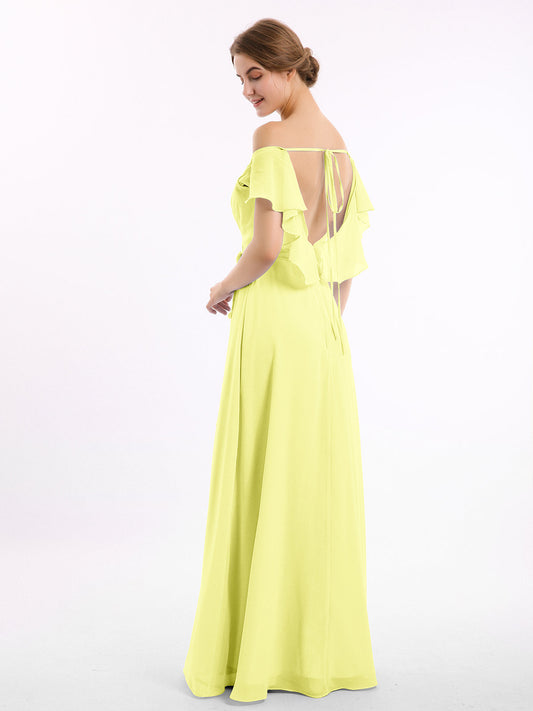 Babaroni NicoleVestidos largos de dama de honor de chiffon sin tirantes Narciso