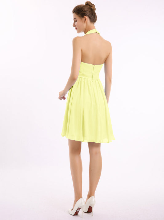 Babaroni SylviaVestidos cortos de dama de honor de chiffon estilo halter Narciso