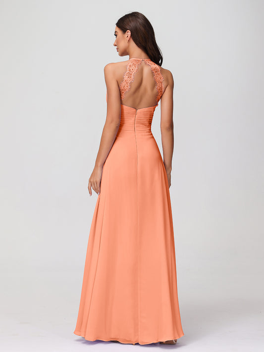 Babaroni AdalynAdalyn Escote En V Gasa Y Encaje Maxi Corte De Dama De Honor Papaya