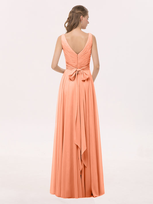 Babaroni CelinaCelina Escote En V Gasa Vestido De Dama De Honor Hasta El Topillo Papaya