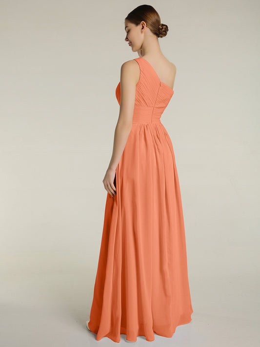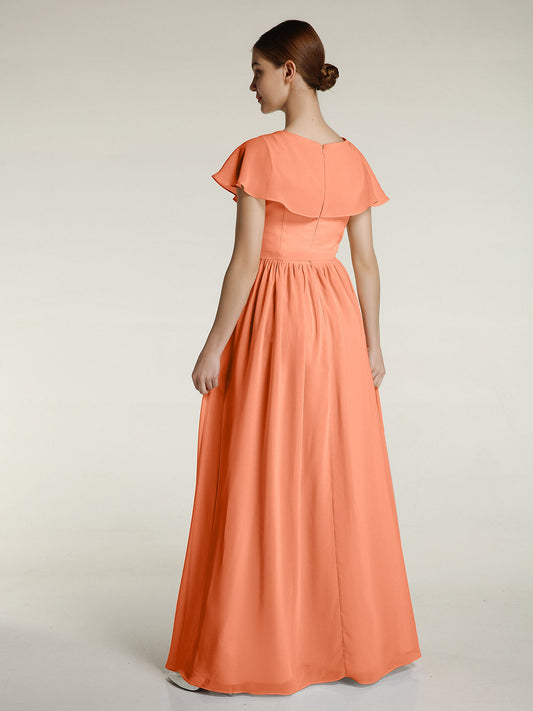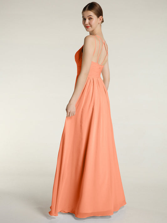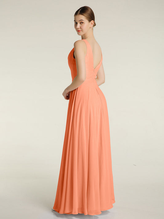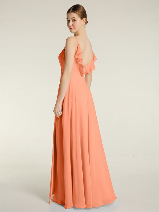Babaroni MariaVestidos largos de chiffon de cuello en Y para damas de honor Papaya