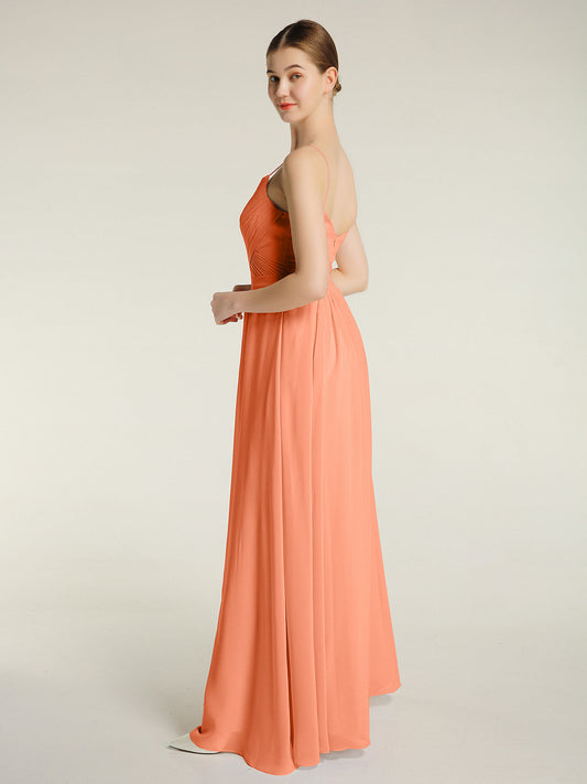 Babaroni GraceVestidos sencillos de dama de honor con tirantes finos Papaya