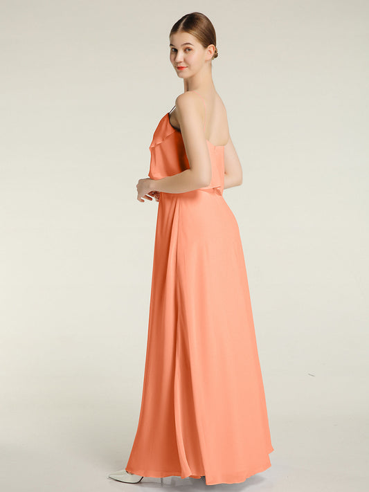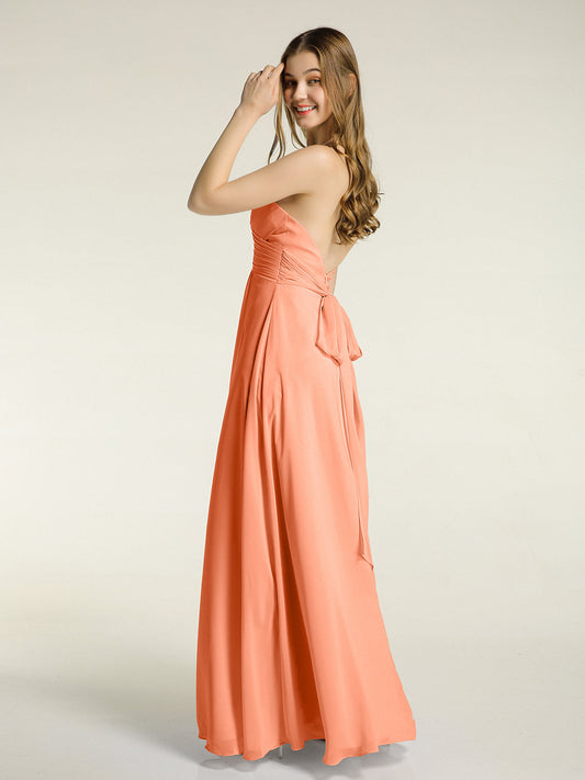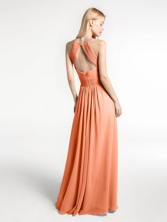 Babaroni MandyVestidos largos de chiffon estilo halter para damas de honor Papaya