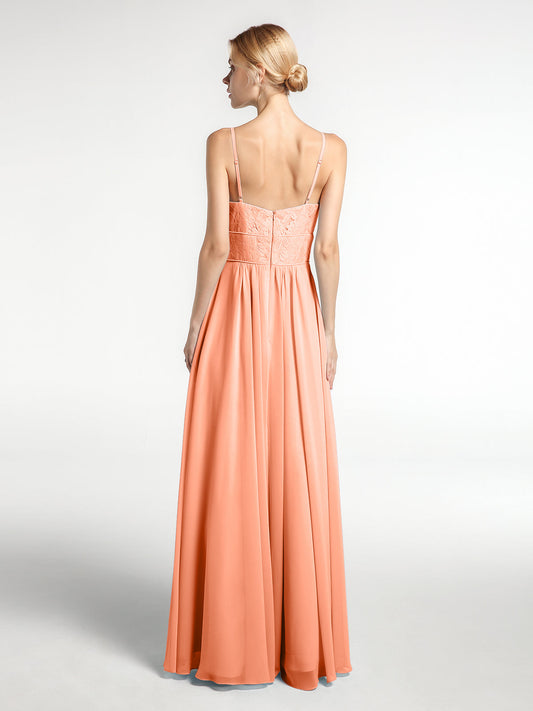 Babaroni MarinVestidos de chiffon y encaje con tirantes finos Papaya