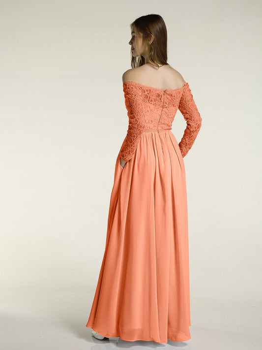 Babaroni MeilaniVestidos de encaje y chiffon con mangas largas y bolsillos Papaya