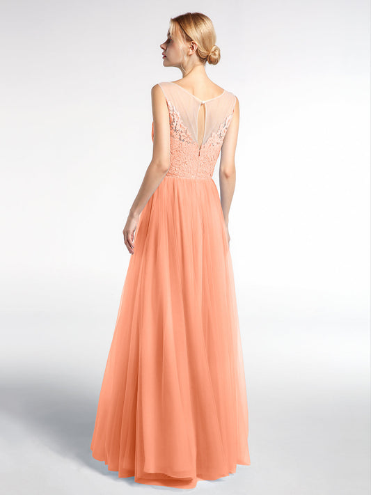 Babaroni LoreleiVestidos largos de tul con escote en V ilusión Papaya
