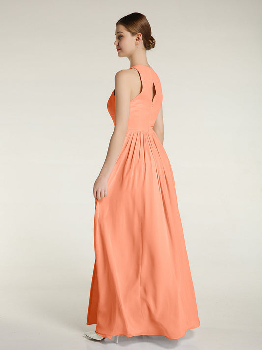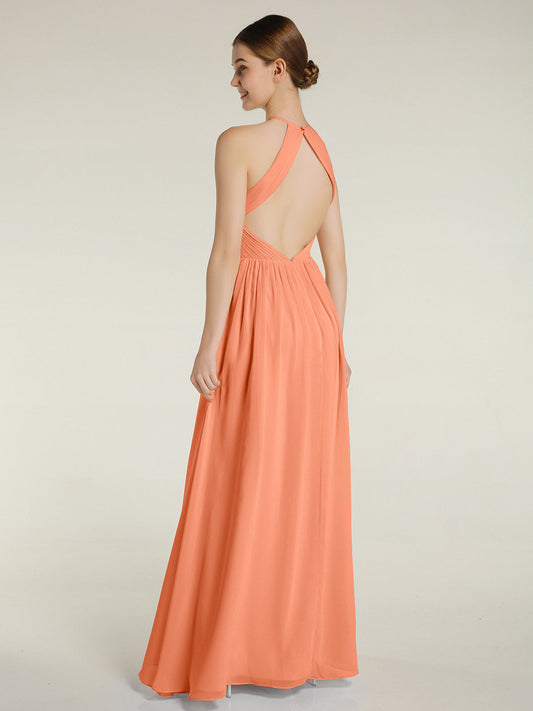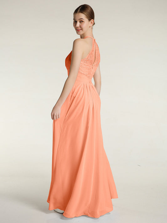 Babaroni AmandaVestidos largos de chiffon y encaje estilo halter Papaya