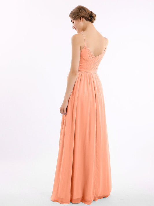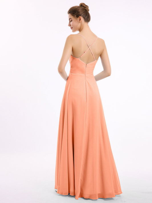 Babaroni VickyVestidos de dama de honor de chiffon con escote en V y tirantes finos Papaya