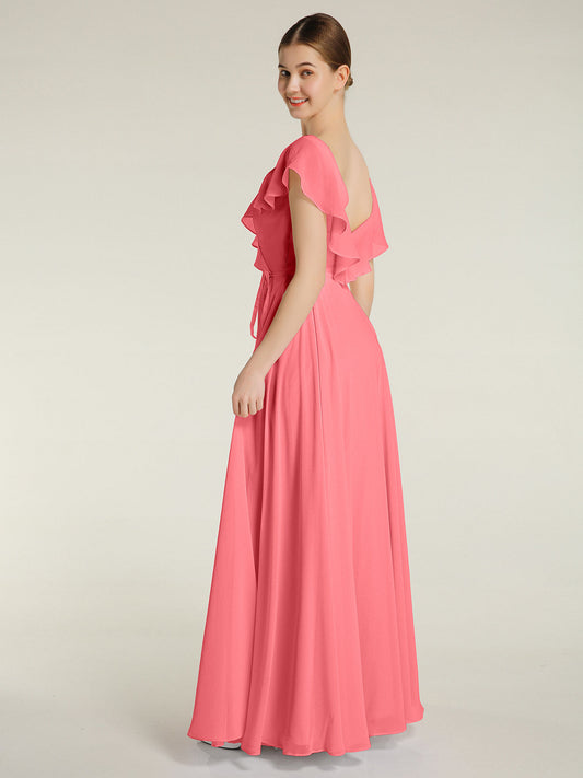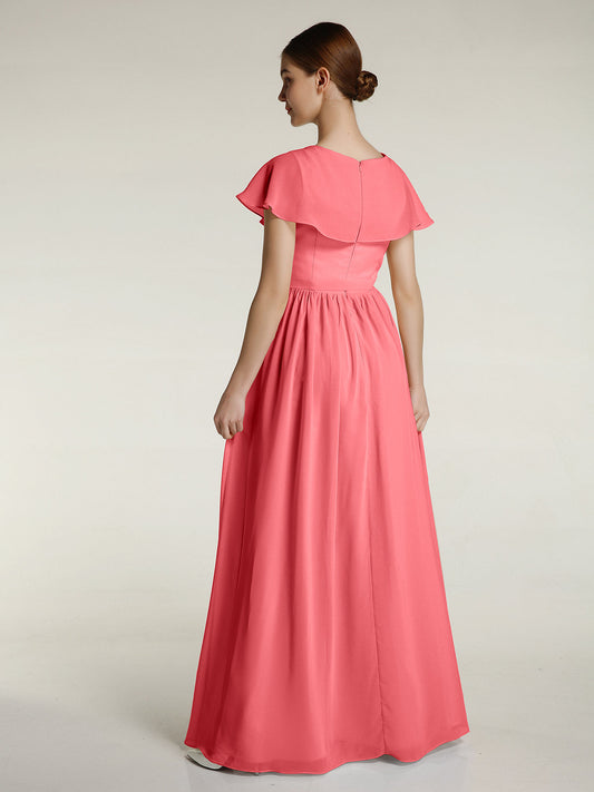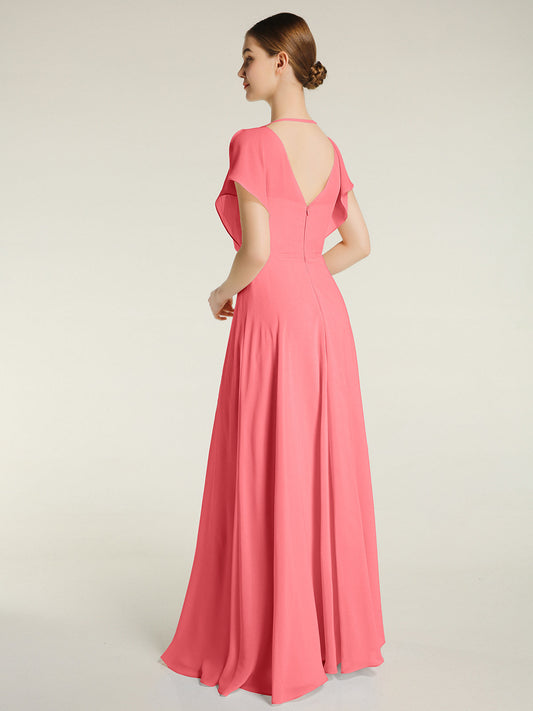 Babaroni GemmaVestidos largos de chiffon con mangas cap y abertura Sandía