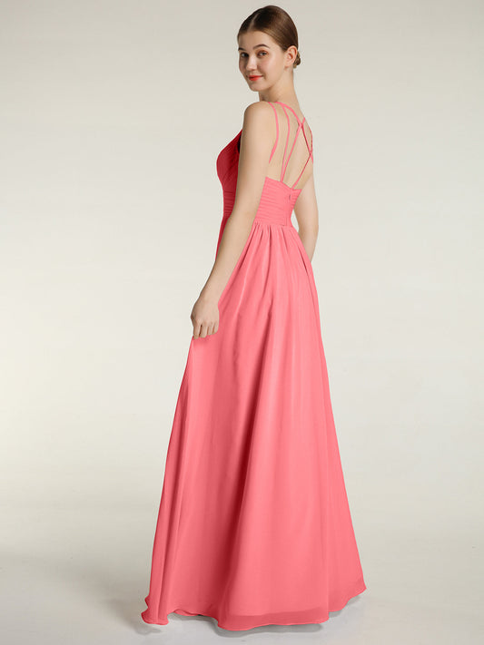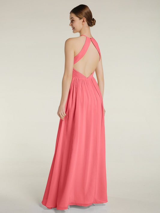 Babaroni AmandaVestidos largos de chiffon y encaje estilo halter Sandía