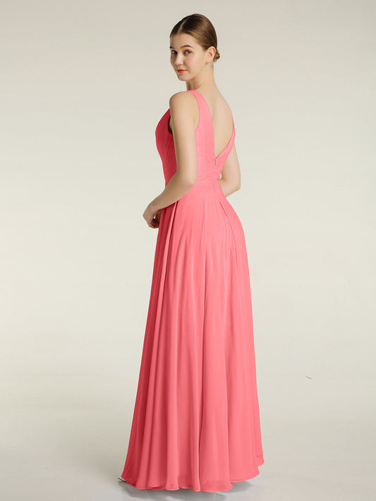 Babaroni CarolVestidos sencillos de chiffon con escote en V Sandía