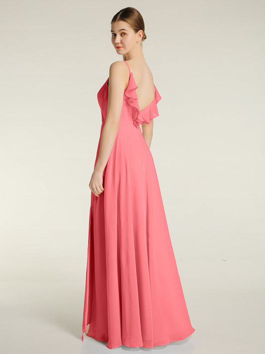 Babaroni VitaVestido de dama de honor de chiffon con escote en V y espalda descubierta Sandía