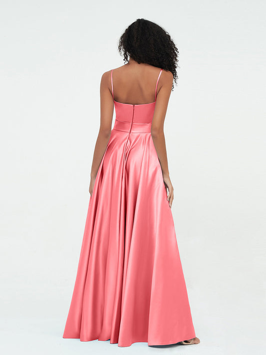 Babaroni MyrnaVestidos máximos de satén estilo A-line con tirantes spaghetti Sandía