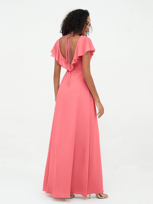 Babaroni PagVestidos estilo A-line de chiffon con escote en V y abertura Sandía