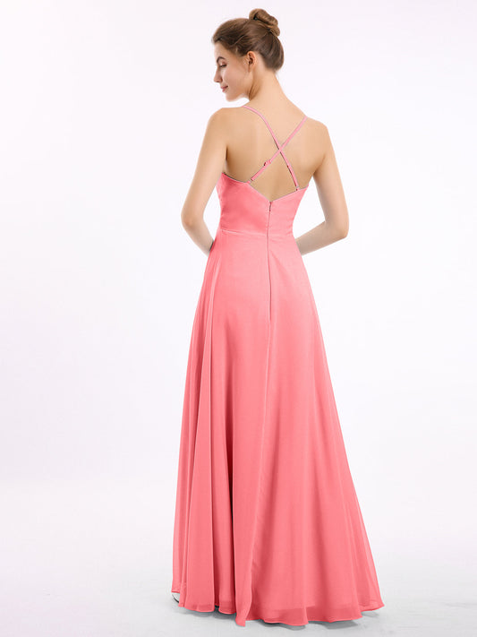 Babaroni FeliciaVestidos largos de chiffon con tirantes finos y escote en corazón Sandía