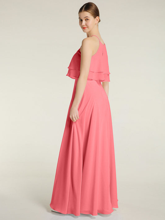 Vestidos largos de chiffon y encaje estilo halter Sandía