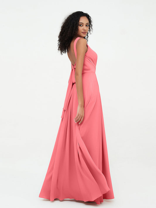 Vestido de dama de honor de chiffon con escote en V y espalda descubierta Sandía