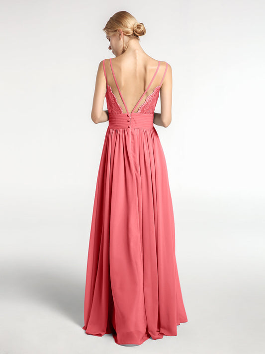 Babaroni CoraVestido largo de dama de honor de chiffon con tirantes dobles Sandía