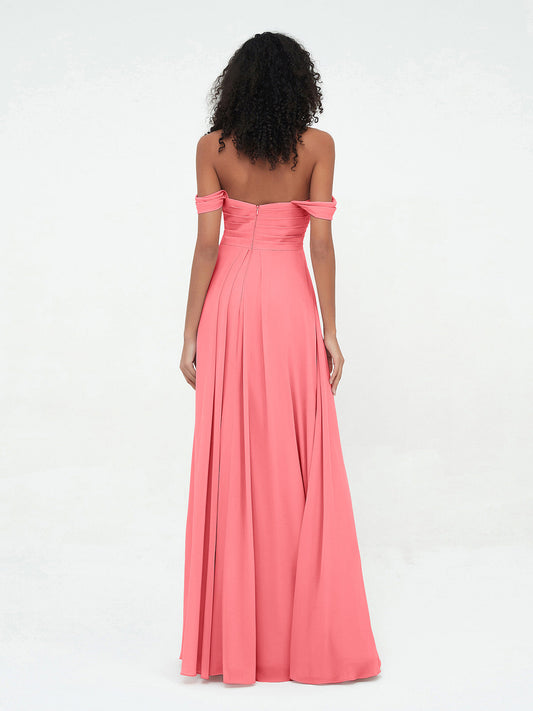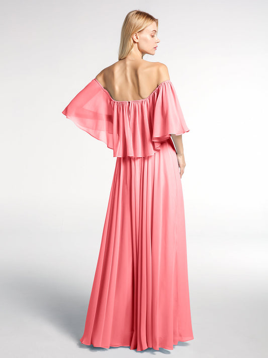 Babaroni VirginiaVestidos máximos de chiffon con falda escalonada estilo off shoulder Sandía